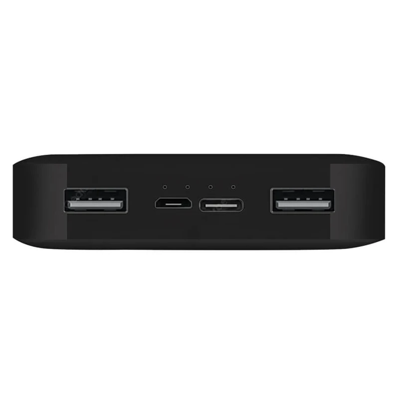 در قسمت بالایی دستگاه، دو پورت خروجی USB-A و یک پورت ورودی MicroUSB در کنار دکمهی پاور و چهار نشانگر LED تعبیه شدهاند. این نشانگرها میزان شارژ باقیمانده را با دقت خوبی نمایش میدهند و کاربر را از وضعیت انرژی داخلی پاوربانک مطلع میسازند. طراحی مینیمال و هماهنگ با زبان طراحی محصولات Redmi باعث شده این مدل با هر محیطی، از محل کار گرفته تا سفر، ظاهری شیک و کاربردی داشته باشد.